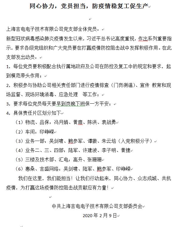 作為一家有責(zé)任的民營企業(yè),同時發(fā)揮企業(yè)黨支部戰(zhàn)斗堡壘作用,發(fā)出了同心協(xié)力,黨員擔(dān)當(dāng),防疫情穩(wěn)復(fù)工促生產(chǎn)的倡議書。