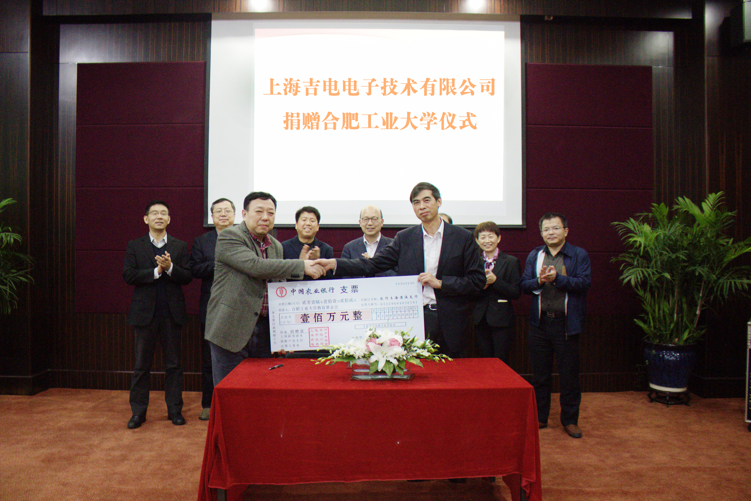 在捐贈儀式上,雙方簽訂了關(guān)于“吉電獎(jiǎng)助學(xué)金”的捐贈協(xié)議,延續(xù)了我司自2011年向合肥工業(yè)大學(xué)—吉電·富士獎(jiǎng)教獎(jiǎng)助學(xué)金的傳統(tǒng),每年出資20萬連續(xù)5年共計(jì)100萬用于獎(jiǎng)勵(lì)電氣與自動化工程學(xué)院優(yōu)秀青年教師和優(yōu)秀本科生、研究生,以及資助品學(xué)兼優(yōu)的家庭困難學(xué)生。