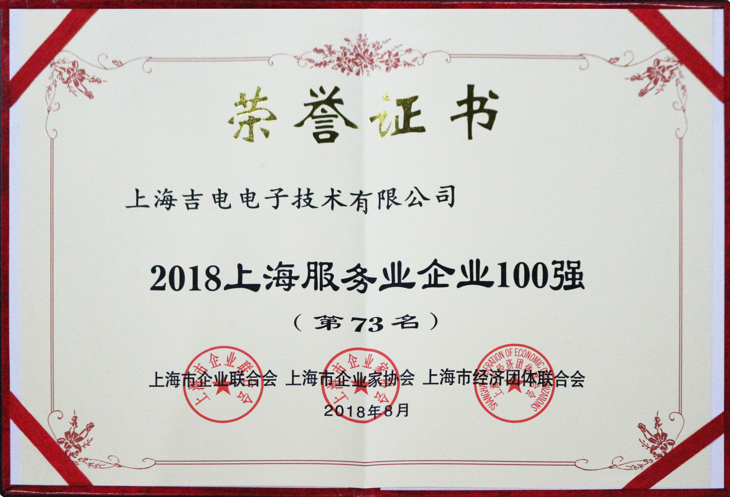 上海吉電電子技術(shù)有限公司憑借卓越的企業(yè)實(shí)力和優(yōu)質(zhì)的服務(wù)態(tài)度,榮獲“2018上海民營企業(yè)100強(qiáng)”第77名、“上海服務(wù)業(yè)企業(yè)100強(qiáng)”第73名、“上海民營服務(wù)業(yè)企業(yè)100強(qiáng)”第43名等獎項(xiàng)。
