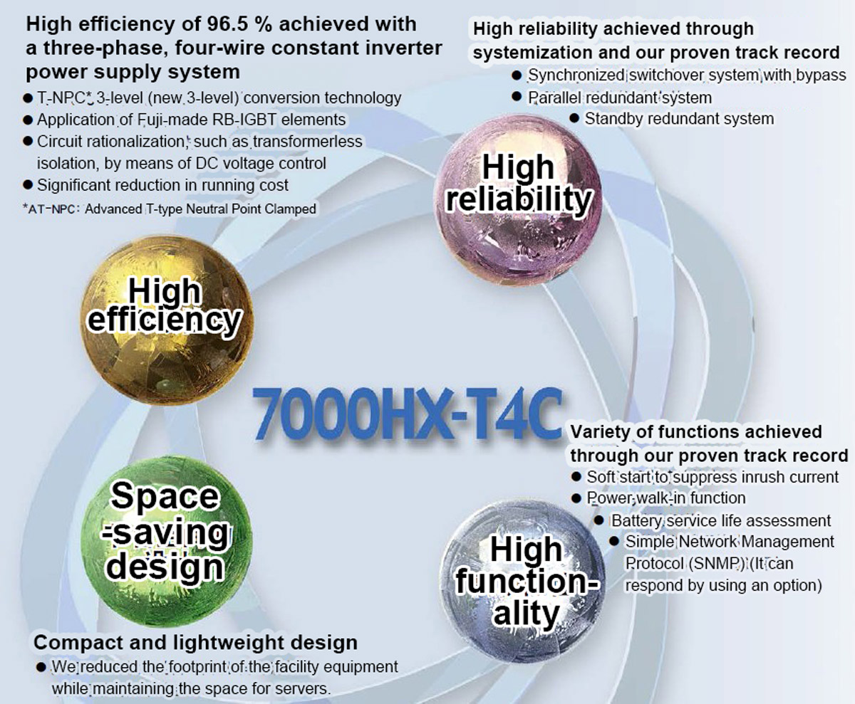 Fuji Electric's high-efficiency UPS systems help to protect critical customer systems and data from power troubles while at the same time helping to improve the global environment by reducing CO2 emissions.
