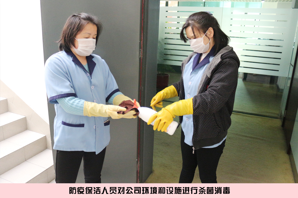 企業(yè)是疫情的第一道關(guān)口,必須要落實(shí)好主體責(zé)任、做好安全防護(hù),公司成立了以總裁張世玨為領(lǐng)導(dǎo)的疫情指導(dǎo)小組,及時制定防控方案、建立消毒制度,加強(qiáng)防護(hù)宣傳教育,備好防控物資,任何復(fù)工人員進(jìn)廠前都必須完成四道防疫工序,一是嚴(yán)格落實(shí)體溫檢測、二是佩戴防護(hù)物品、三是工作路線安排、四是在崗員工全部實(shí)行分餐制等要求。同時,防疫保潔人員在園區(qū)必須每天殺菌消毒,并通過企業(yè)微信發(fā)放了疫情的防護(hù)要求。