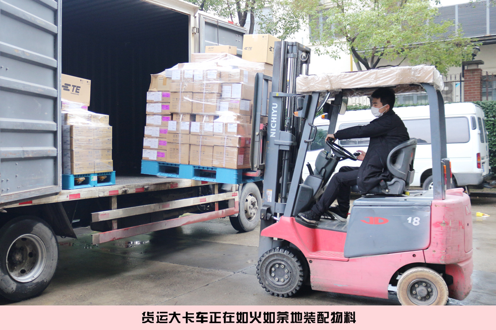 2月12日上午,小編在吉電園區(qū)的倉庫物流部里看到,貨運(yùn)大卡車正在如火如荼地裝配物料,運(yùn)輸車的機(jī)械臂上下擺動,員工們正在查詢、出庫、組裝、配送......一條龍井然有序地忙碌著,打響了新年的“第一槍”。