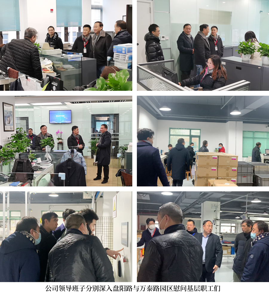 公司副總陸軍帶領(lǐng)若干領(lǐng)導(dǎo)班子來(lái)到吉電盤(pán)陽(yáng)路辦公樓看望各部門(mén)廣大職工,財(cái)務(wù)總監(jiān)吳劍嘯攜公司其他領(lǐng)導(dǎo)班子深入浦江鎮(zhèn)萬(wàn)泰路新廠房慰問(wèn)基層工作人員。