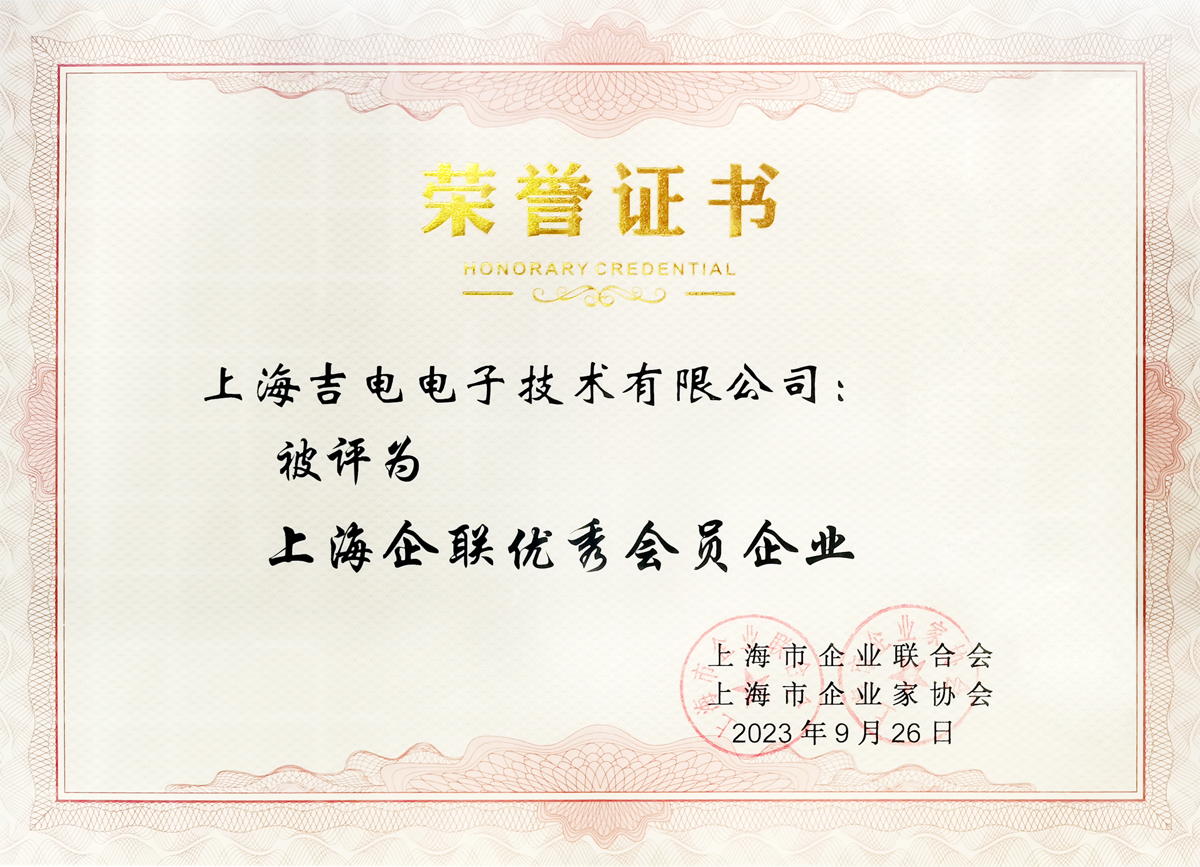 2023年9月26日,上海吉電電子技術(shù)有限公司被上海市企業(yè)聯(lián)合會、上海市企業(yè)家協(xié)會評為“上海企聯(lián)優(yōu)秀會員企業(yè)”稱號。